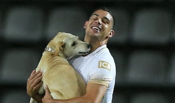 وصال الكلب وجال في جميع أرجاء الملعب وقفز ولعب وسط ضحك اللاعبين والجماهير إلا أن التقطه أحد اللاعبين وأخرجه وسط صيحات وتصفيق الجماهير.