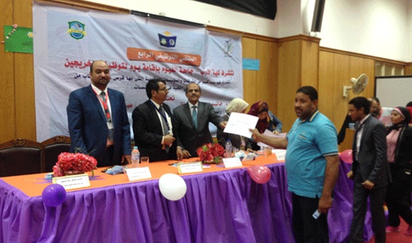 نظمت وحدة متابعة الخريجين بكلية الاَداب بجامعة الفيوم ملتقى التوظيف الرابع ويوم الخريجين بقاعة المؤتمرات بالكلية وذلك برعاية الدكتور خالد حمزة رئيس الجامعة وإشراف الأستاذ الدكتور أشرف عبد الحفيظ رحيل نائب رئيس الجامعة لشئون خدمة المجتمع وتنمية البيئة .