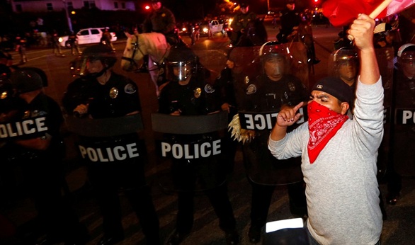 ووفقا لمكتب شريف المقاطعة فالاحتجاجات انتهت 11 مساءا، وانتشرت الشرطة بخيولها تدفع الناس بعيدا عن مكان إقامة مؤتمر ترامب.