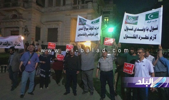 مؤيدو "البدوى" يتبادلون الهتافات المعادية مع معارضيه بمقر حزب الوفد