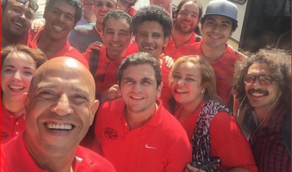 نشر الفنان أشرف عبد الباقي عبر صفحته الرسمية بموقع التواصل الاجتماعي "انستجرام" صورة سيلفي مع فريق عمل مسرح مصر قبل دقائق من صعودهم الطائرة المتوجهة لولاية أبو ظبي الاماراتية.