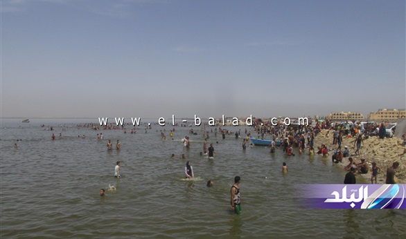 وقام الأهالى بالنزول للاستحمام فى مياه بحيرة قارون , واستمتعوا بمياهها والشواطئ المفامة عليها.