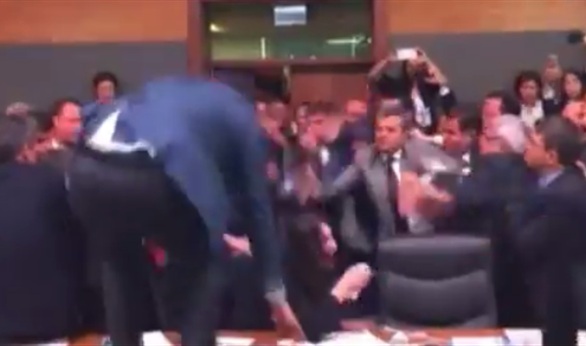 شهد البرلمان التركي اندلاع شجار كبير بين نواب حزب العدالة والتنمية الحاكم ونواب من المعارضة خلال جلسة لمناقشة تعديل الدستور.