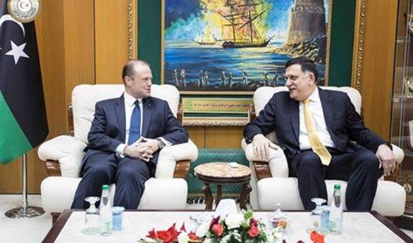 استقبل فائز السراج، رئيس المجلس الرئاسي لحكومة الوفاق الوطني الليبي، صباح اليوم الأربعاء، جوزيف موسكات، رئيس الوزراء المالطي، بمقر حكومة الوفاق بالقاعدة البحرية بطرابلس.