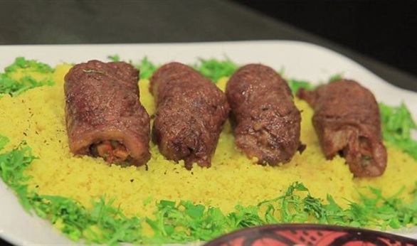 * ضعي الحشو في شرائح اللحم ولفيها واغلقيها باستخدام خلة أسنان.