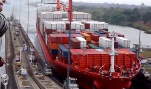 اصطدمت سفينة عملاقة، بأحد السيارات على رصيف الميناء أثناء عبورها قناة بنما في مشهد لا يتكرر كثيرًا.