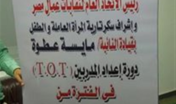 تبدأ اليوم السبت ولمدة أسبوع بمقر الاتحاد العام لنقابات عمال مصر، الدورة التدريبية لإعداد مدربين بأمانة المرأة بالاتحاد العام، بناء على توجيهات جبالى المراغى رئيس الاتحاد العام والنائب بمجلس النواب.