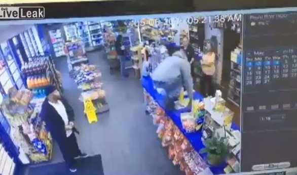نشر موقع "لايف ليك" المعني بالفيديوهات مقطع فيديو لسيدة حامل تعرضت لهجوم من قبل أحد الرجال المسلحين داخل السوبر ماركت في أحد محطات الوقود.