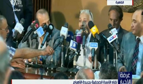 وأعلن رئيس تحرير الأهرام ، البيان الصادر عن اجتماع لجنة الصياغة المنبثة عن اجتماع الأسرة الصحفية "بمؤسسة الأهرام ، حيث أكد المجتمعون فى بيانهم الختامى على العديد من المطالب .
