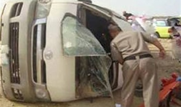 إصابة 11 شخصا بينهم طفلين فى انقلاب ميكروباص بالصحراوى الشرقى بالمنيا