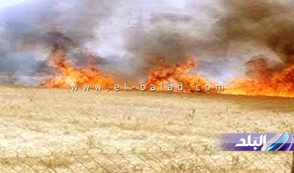 بالصور.. السيطرة على حريق بزراعات قمح ببني سويف