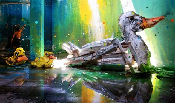 واستخدم "أرتور" في لوحاته المواد التي تخلص منها أفراد المدينة مثل مصدات السيارات القديمة وإلإطارات المطاطية وجميع أنواع البلاستيك، وبعد ذلك يدهن الفنان لوحاته بالألوان ليعطيها لمسات جمالية.