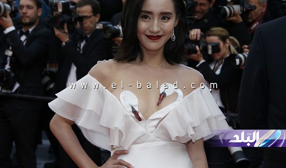 ظهرت إحدى ضيفات آسيوية الاصل بالسجادة الحمراء بحفل افتتاح مهرجان "كان" السينمائي بدورته الـ69 من وهي ترتدي فستان أبيض عليه تصميم طائر " البجعة".
