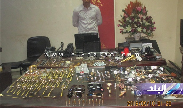 بمواجهته اعترف بارتكابه 7 وقائع سرقات مساكن .. وأرشد عن المسروقات وهى عبارة عن 56 ساعة يد ماركات عالمية 9 هاتف محمول و46 ورقة مالية فئة المائة دولار و 64 ملعقة وشوكة مطلاه بالذهب و2 جهاز لاب توب (1) أي باد ( 1) سبيكة ذهبية و 13 خاتم فضة وذهب الماظ 2 كاميرا تصوير سلسلة الماظ بعض الإكسسوارات الحريمي، 5 حافظة جلدية، 12 طلقة حية عيار 9 مم طويل ، 8 طلقات صوت، كمية من العطور والبرفانات والسبح والولاعات، 6 نظارات ماركات عالمية.