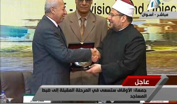 بالفيديو.. وزيرالأوقاف يهدي محافظ أسوان درعا بمؤتمر الشئون الإسلامية
