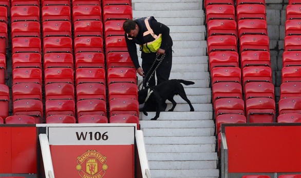 بالصور.. "الكلاب البوليسية" تمشط "أولد ترافورد" بعد الاشتباه في "عبوة" قبل مباراة مانشيستر