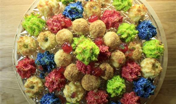 -نضع الصينية فى الفرن عند درجة حرارة 160 لمدة ربع ساعة وتترك كرات جوز الهند حتى تبرد تماما
