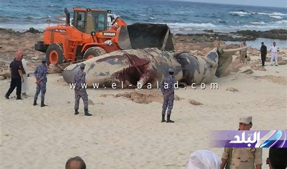 وتبع ذلك تداول رواد مواقع التواصل مجموعة من الصور، تظهر شاحنة كبيرة تجر الحوت النافق، والذى جرفته المياه أمس على أحد شواطىء مرسي مطروح.