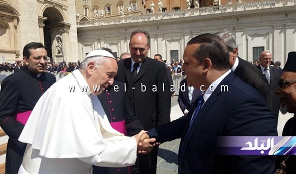 وقال المستشار أحمد الفضالي إن البابا فرانسيس أكد للوفد الذي يضم عددا من النواب والسفراء السابقين والسياسيين بمرافقة السفير حاتم سيف النصر سفير مصر لـدى "الفاتيكان"، اثناء استقباله رسميا امس عقب مراسم العظة الأسبوعية التي أقيمت بساحة القديس بطرس عن تقديره للقاهرة وللرئيس عبدالفتاح السيسي، مشيرا الي أن زيارته للقاهرة قريبا تأتي تلبية لدعوة الرئيس عبد الفتاح السيسي اثناء زيارته الأخيرة للفاتيكان.