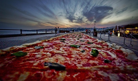 أبرزت صحيفة "الجارديان" البريطانية، عدة صور لأطول بيتزا في العالم في نابولي، بطول 1.8 كيلو متر، مضيفة أن إعداد تلك البيتزا استغرق 250 من صناع البيتزا، وأستمر صنعها لمدة ست ساعات و 11 دقيقة.