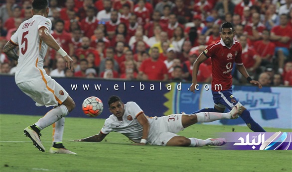 تصدت العارضة لفرصة محققة للاعب دزيكو مهاجم فريق روما الايطالى اثر انفراده فى الدقيقة 15 بشريف اكرامى حارس مرمى النادى الاهلى فى المباراة الودية المقامة حاليا على ملعب استاد هزاع بن زايد بنادى العين الاماراتى.