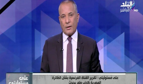 عرض الاعلامي أحمد موسي، صورة لشخص إخواني يدعى «عطية» ويعمل بشركة مصر للطيران ويرفع شعار الإخوان داخل إحدي الطائرات.