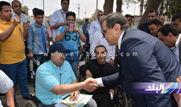 وقام خلال جولته التفقدية داخل الملتقي الذي اقيم في مركز شباب الساحل بشبرا ، بمصافحة ذوي الاحتياجات الخاصة المتقدمين في الملتقي، وقبل رأس أحد المعاقين.