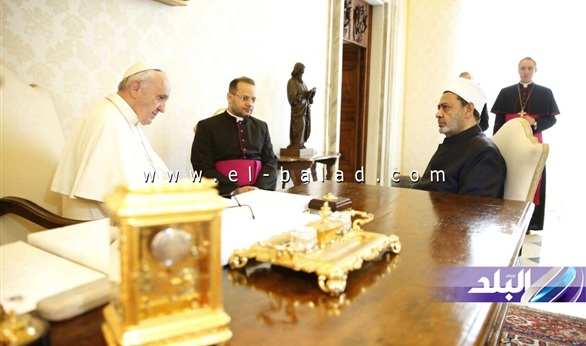 وعقد لقاء بين والبابا فرنسيس بابا الفاتيكان بالمقر البابوي، حيث ركز اللقاء الذي جمعهما على تنسيق الجهود بين الأزهر الشريف والفاتيكان من أجل ترسيخ قيم السلام ونشر ثقافة الحوار والتسامح والتعايش بين مختلف الشعوب والدول، وحماية الإنسان من العنف والتطرف والفقر والمرض.