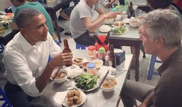 تناول الرئيس الأمريكي باراك أوباما الذي يزور فيتنام حاليا العشاء في أحد المطاعم المتواضعة في العاصمة الفيتنامية هانوي مع انتوني بوردين الطباخ الشهير ومقدم البرامج التليفزيونية حول أكلات الشعوب المختلفة.