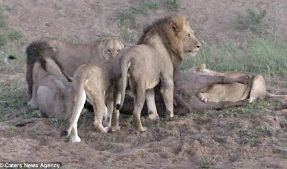 بالفيديو والصور.. 4 أسود يفترسون «جاموسة» قبل أن تحدث المعجزة!
