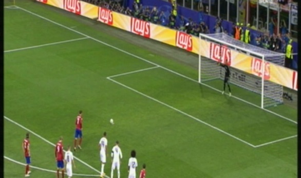 أهدر الفرنسي جريزمان مهاجم أتليتكو مدريد الإسباني هدفا محققا من ضربة جزاء احتسبها الحكم لصالح فيرناندو توريس في الدقيقة الخامسة من الشوط الثاني للمباراة المقامة بين الريال وأتليتكو في النهائي الأوروبي.