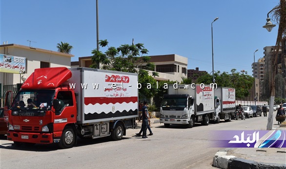بالصور.. وصول سيارات جديدة محملة بالسلع المدعمة للفيوم