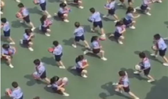 تداول رواد مواقع التواصل مقطع فيديو لطلاب مدرسة ابتدائية في مدينة تشونجشان لمقاطعة قوانجدونج الصينية، وهم يقومون بتمارين الصباح في فناء المدرسة.