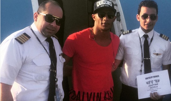 نشر الفنان محمد رمضان صورة عبر حسابه علي موقع التواصل الاجتماعي انستجرام وهو علي باب طائرة تابعة للخطوط الجوية المصرية وأفراد طاقمها.
