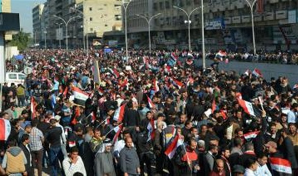 مئات العراقيين يتظاهرون في ساحة التحرير وسط بغداد تلبية لدعوة من التيار الصدري