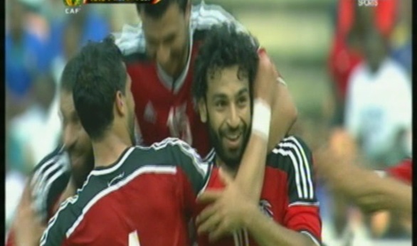 وحصل محمود حسن تريزيجيه على ضربة ثابته بعد تعرضه للعرقلة على حدود منطقة الجزاء لعبها محمد صلاح رائعة محرزا هدف التقدم لمنتخبنا في الشوط الاول.