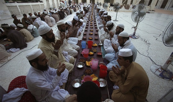 ويقول المنظمون إن الإفطار الجماعي مناسبة يتجمع فيها الناس لتناول الطعام وتعلم آداب وتقاليد الشهر الكريم.