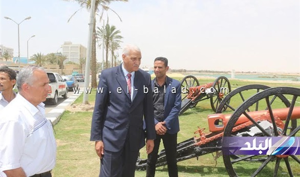 بالصور.. محافظ السويس يتفقد مدفع رمضان بمنطقة الخور بعد تجميله