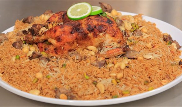 -قدميها مع ارز بالخلطة والمكسرات وزينيها بشرائح الليمون