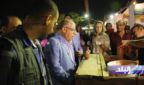 واثناء تفقد الوزير للخيمة البدوية حرص على شرب الشاى على الركية وسط حضور جماهيرى كبير