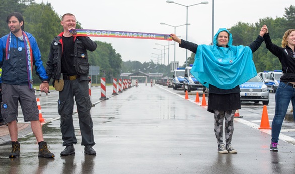 وشكل المتظاهرون سلسلة بشرية قرب رامشتاين للاحتجاج على الطائرات بدون الطيار التي تتحرك منها.