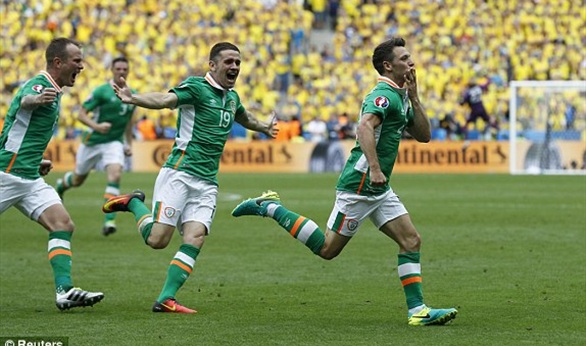 نجح المنتخب الايرلندي فى تسجيل هدف التقدم على حساب منافسه السويد وذلك بالمباراة التى تجمع بينهما حاليا على ملعب فرنسا بالجولة الاولى من منافسات المجموعة الخامسة ليورو 2016.