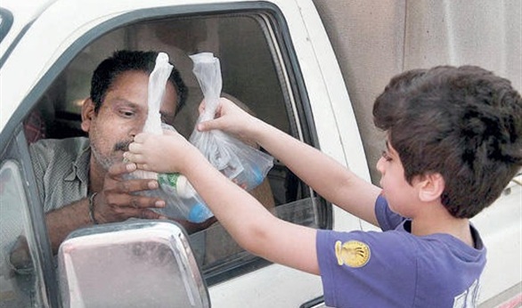ويقول أمين السيد من أهالى بركة السبع، إنه يتوجه هو ومجموعة من الشباب قبل أذان المغرب فى بداية كوبرى بركة السبع لتوزيع العصائر والبلح على المسافرين الصائمين.