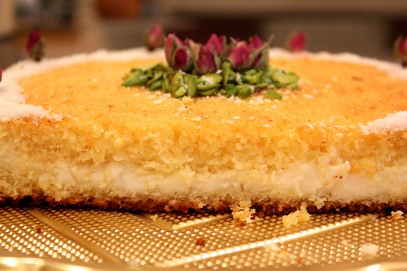 بسبوسة بالقشطة والمكسرات للشيف شربينى