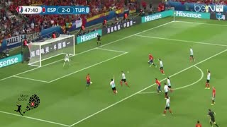 وأضاف موراتا الهدف الثالث فى الدقيقة 47 من متابعة جيدة لتمريرة سحرية لانييستا ليسكنها فى شباك المرمى التركى ويفشل يلماز فى تسجيل الهدف الاول بمرمى اسبانيا عقب مراوغته للدفاعات الاسبانمية وتسديده الكرة قوية تعلو عارضة الماتدور الاسبانى.