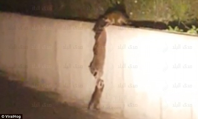 رصدت إحدى الكاميرات اثنين من حيوان الراكون، عندما كانا يتعاونان من أجل أن يساعدا راكونًا آخر صغيرا لعبور أحد الجدران، حسبما أبرزت صحيفة ديلي ميل البريطانية.