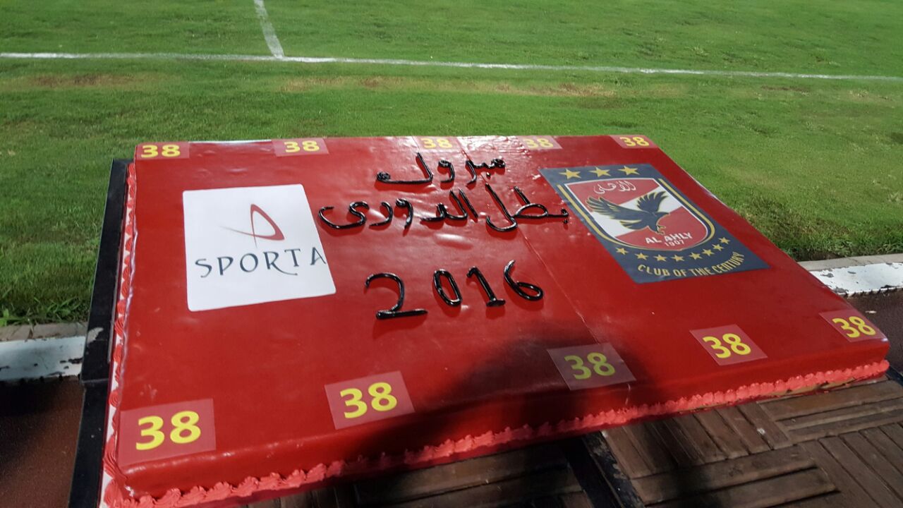 واضاف أن التورته عليها شعار الأهلي وسبورتا ورقم 38 الذي وصل اليه في عدد القاب الدورى.