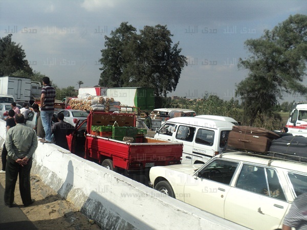 توقفت الحركة المرورية على طريق مصر-الإسكندرية الزراعي السريع في اتجاه القاهرة بسبب انقلاب سيارة نقل محملة بالبطيخ بمطلع كوبرى قليوب.