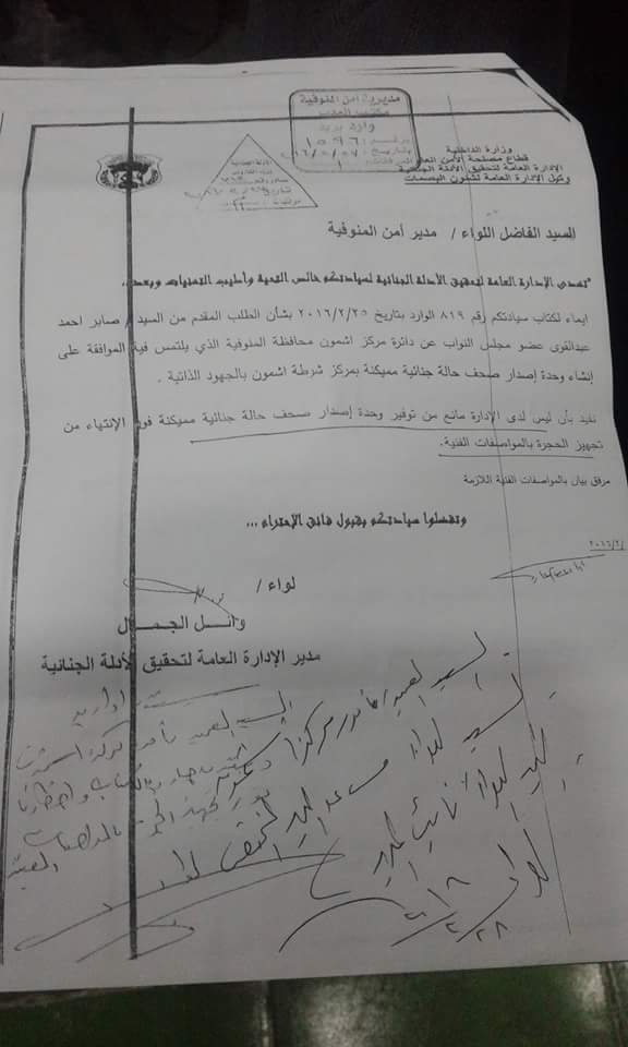 الموافقة على إنشاء مكتب لاستخراج الصحف الجنائية بأشمون