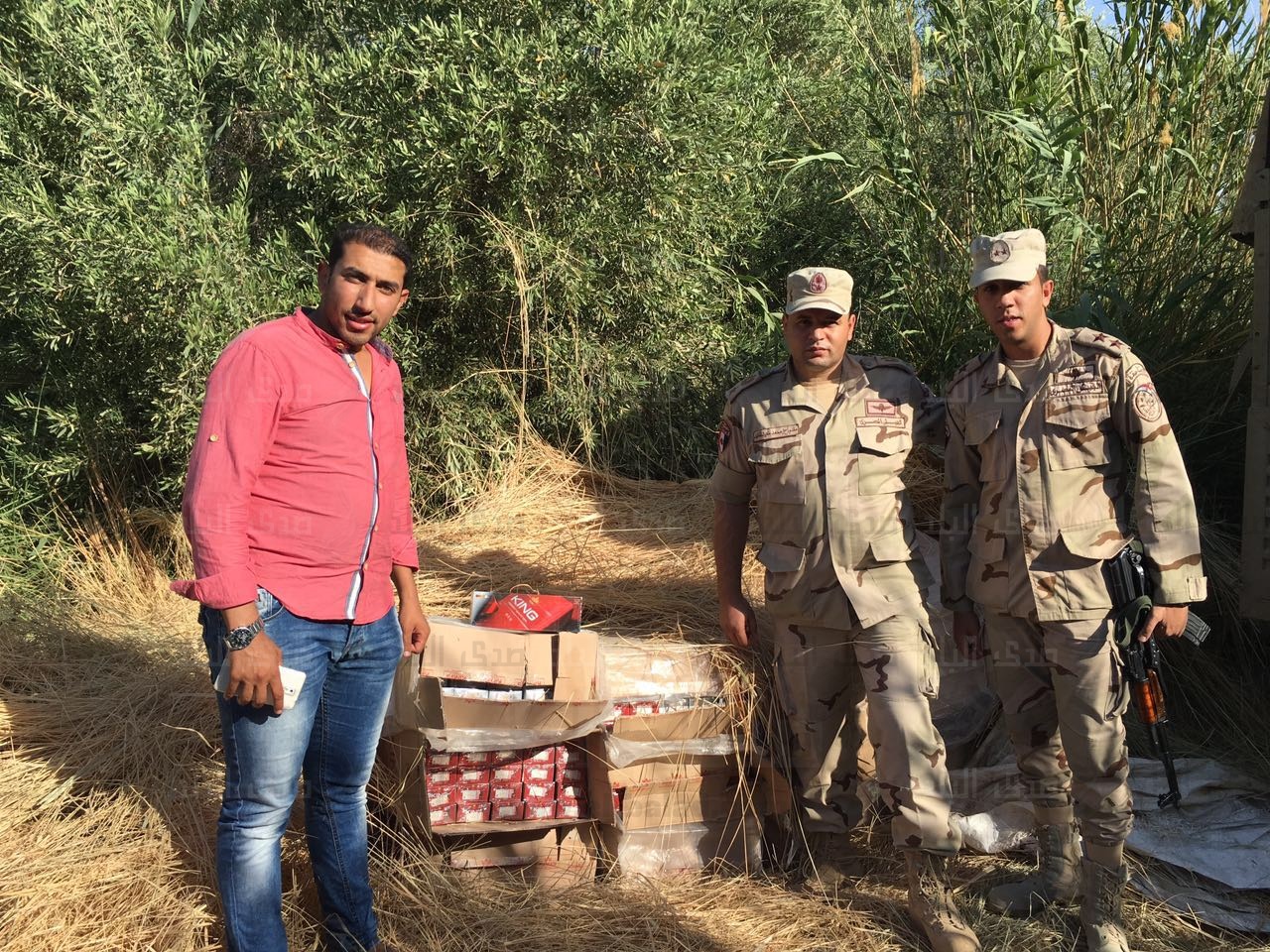 بالصور.. ضبط 31 ألف علبة سجائر مهربة داخل عشة بسيوة